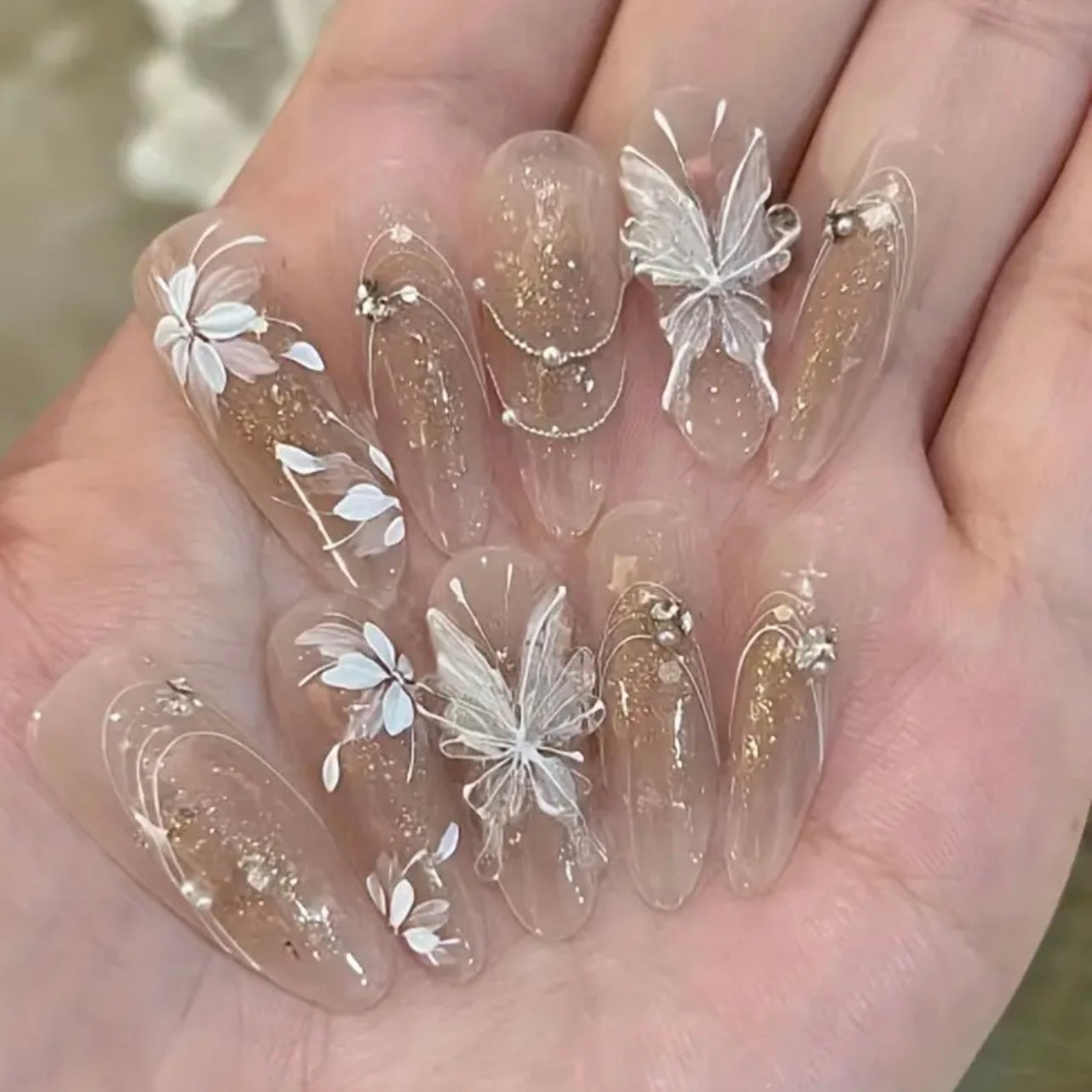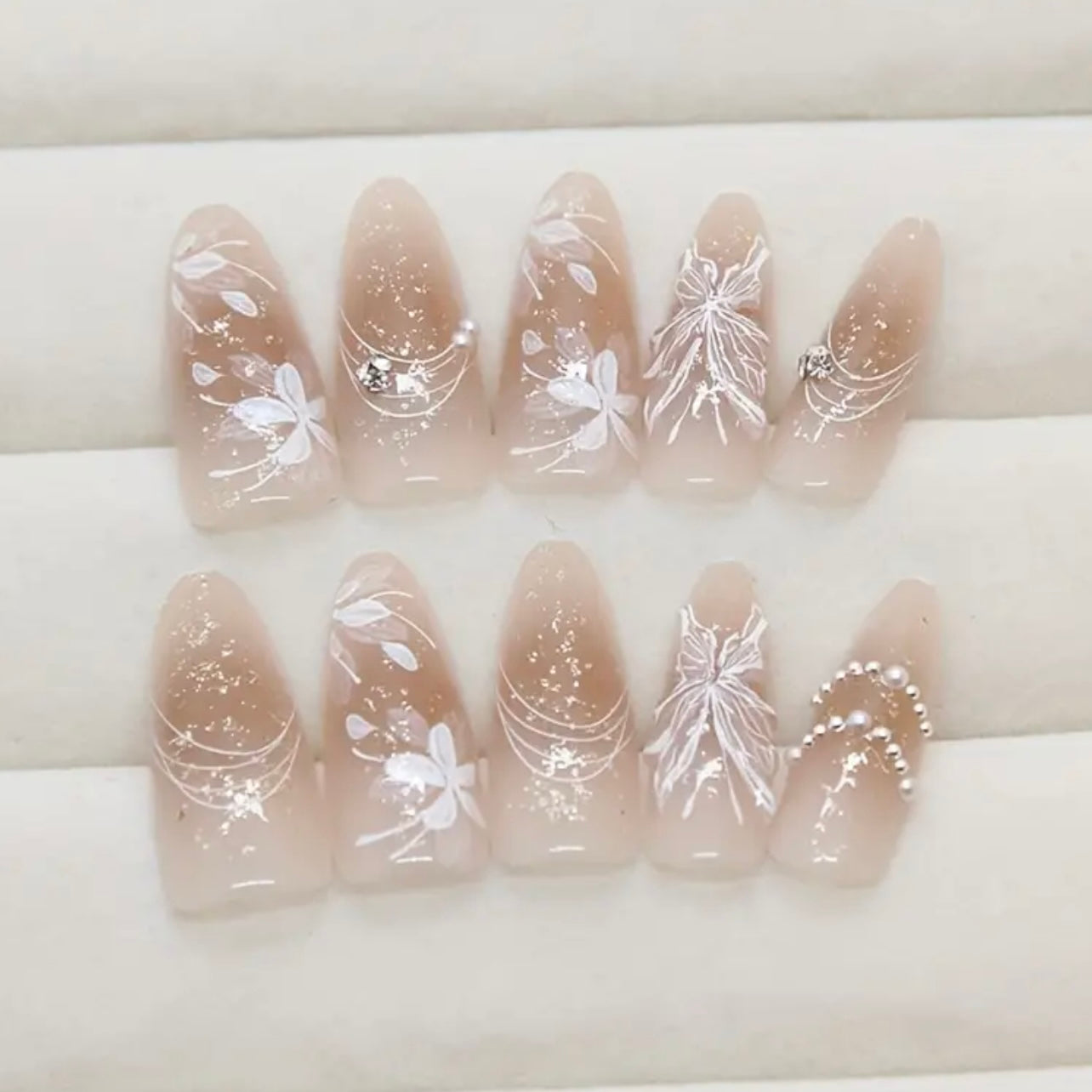 These stunning press-ons add a soft, enchanting touch to any look — ideal for brides and anyone who loves a delicate, feminine vibe.