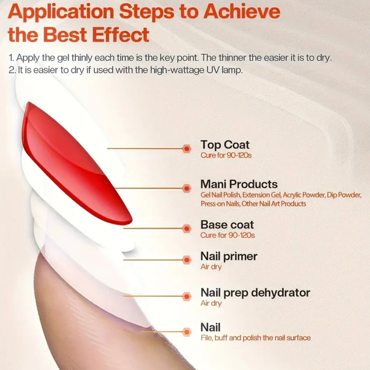 This 8ml clear no-wipe gel top coat delivers a high-gloss, long-lasting finish without the need to wipe off any sticky residue after curing. Perfect for sealing in color and nail art, it provides a durable, chip-resistant layer that keeps your manicure looking fresh and shiny. Easy to apply and cure under a UV or LED lamp, it’s an essential for a flawless, salon-quality finish.