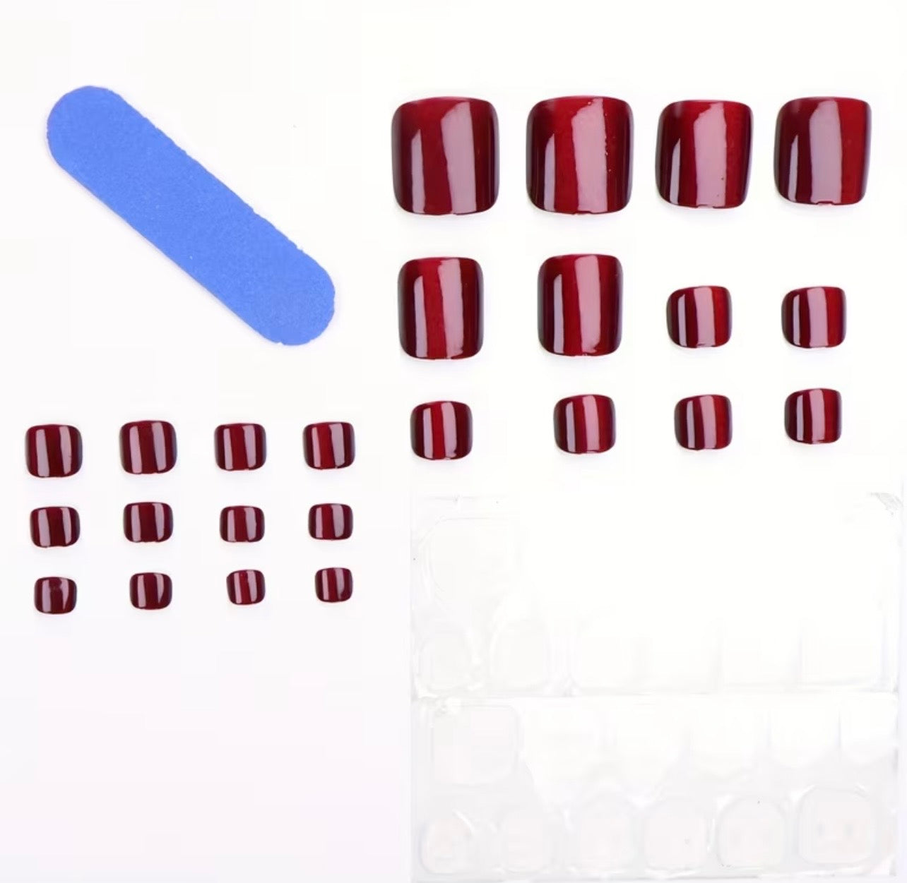 Vampy Noir 🩸 Toe Press-Ons feature a deep red cat-eye finish that shifts between dark wine and near-black under different light. Designed to give a bold, seductive look, this set delivers a magnetic glow with a sleek, high-shine finish — perfect for elevating your pedicure with effortless luxury and dark allure.